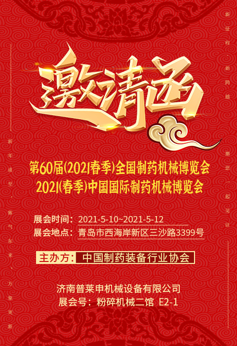 濟(jì)南普萊申機(jī)械設(shè)備有限公司成功申報(bào)第60屆2021年(春季)中國制藥機(jī)械博覽會(huì)(CIPM ),青島制藥機(jī)械展,CIPM將于2021年5月10日至5月12日在青島世界博覽城舉行